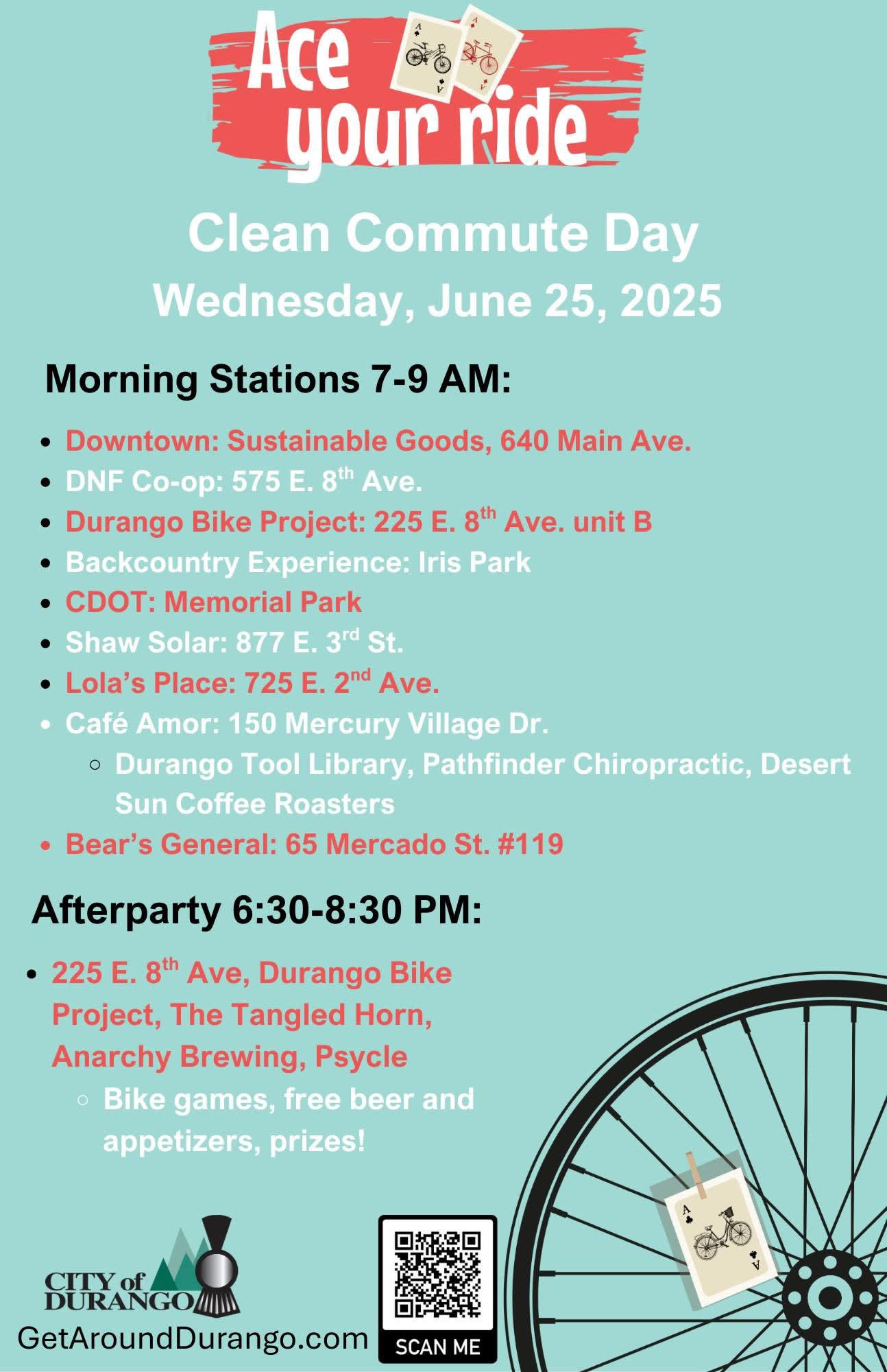 More Info: https://www.durangoco.gov/754/Clean-Commute-Day-Commuter-Challenge